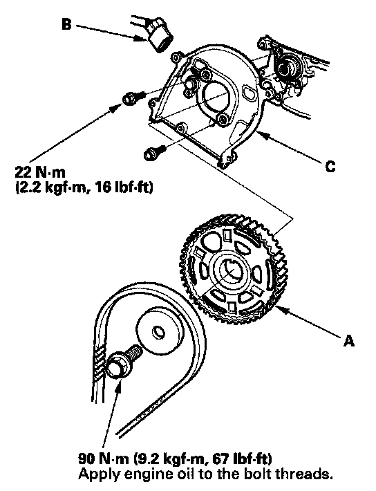 8. Install the parts in the reverse order of removal. Reinstall the timing belt and other removed parts.