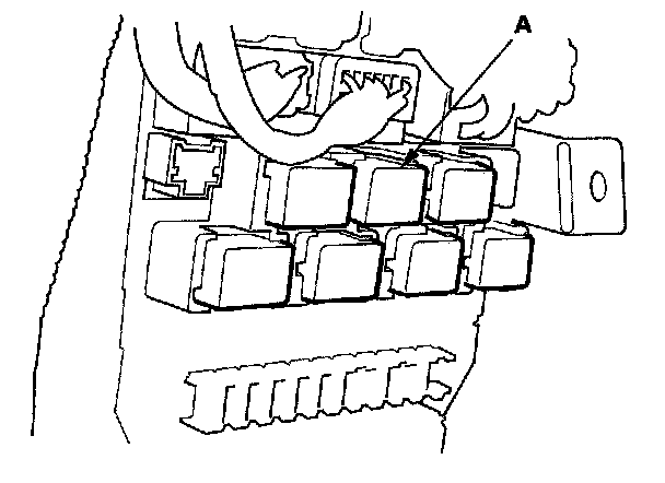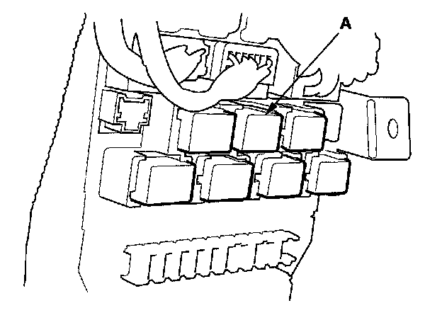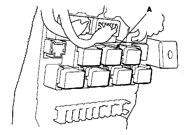 26. Remove the left kick panel, then remove PGM-FI main relay 1 (FI MAIN) (A) from the under-dash fuse/relay box.