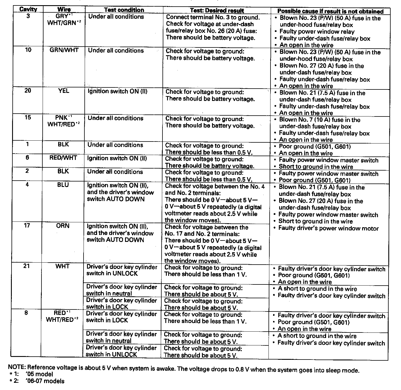 5. With the power window master switch still disconnected, make these input tests at the connector.