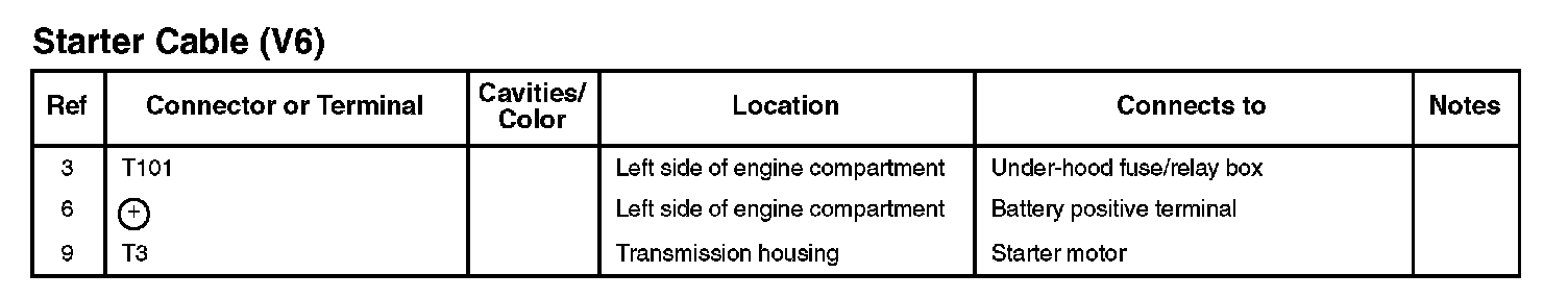 Starter Cable (V6):