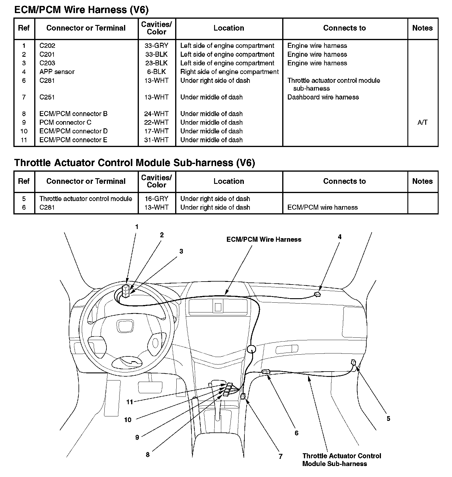 ECM/PCM Wire Harness (V6)/Throttle Actuator Control Module Sub-harness (V6):