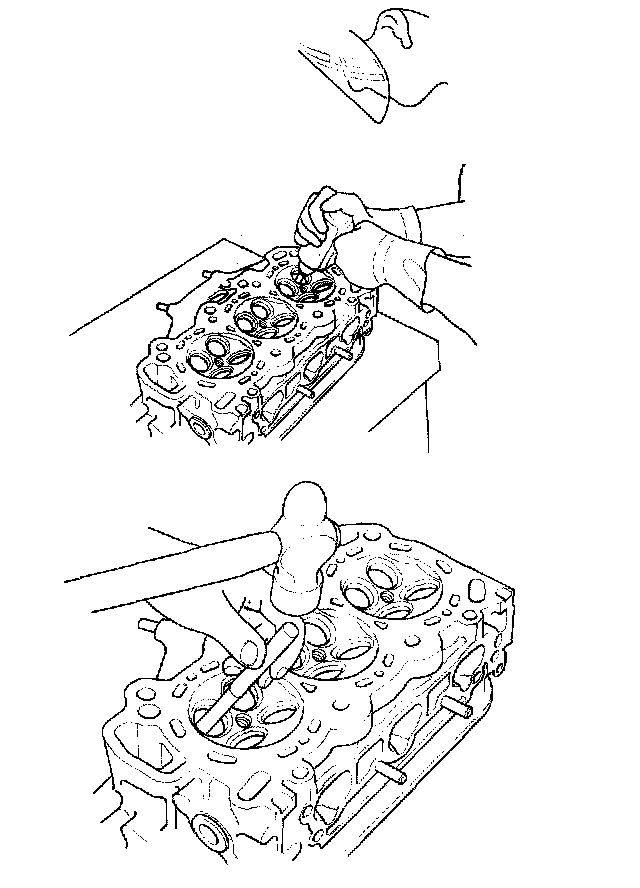 6. Turn the head over, and drive the guide out toward the camshaft side of the head.