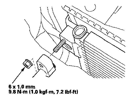 - Be careful not to damage the radiator or the A/C condenser fins when installing the A/C condenser.