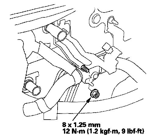 7. Remove the mounting nut from the heater unit. Take care not to damage or bend the fuel lines and the brake lines, etc.