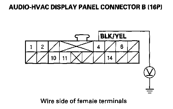 4. Measure the voltage between the No. 4 terminal of audio-HVAC display panel connector B (16P) and body ground.