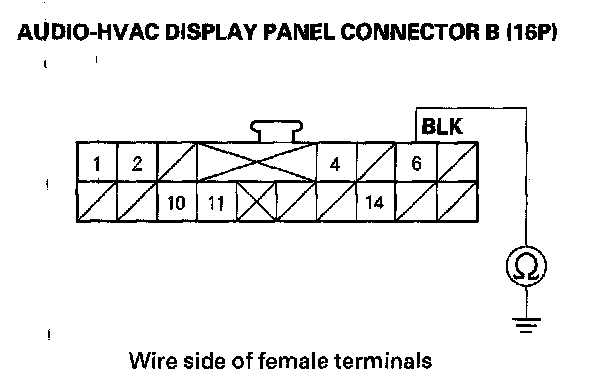 6. Check for continuity between the No. 6 terminal of audio-HVAC display panel connector B (16P) and body ground.