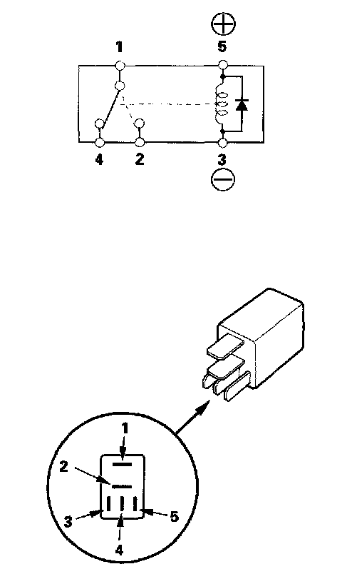 - There should be continuity between the No. 1 and No. 2 terminals when battery positive terminal is connected to the No. 5 terminal, and battery negative terminal is connected to the No. 3 terminal.