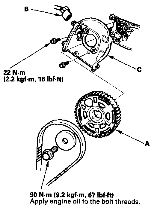 6. Disconnect the CMP sensor connector (B), then remove the back cover (C).