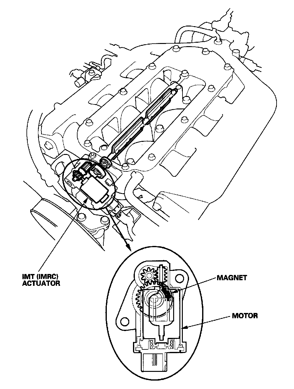 The intake manifold tuning (IMT) (intake manifold runner control (IMRC)) valve actuator has a sensor that detects the IMT (IMRC) valve position and sends it to the ECM/PCM.