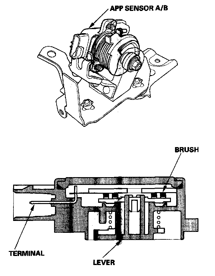 As the accelerator pedal position changes, the sensor varies the signal voltage to the ECM/PCM.