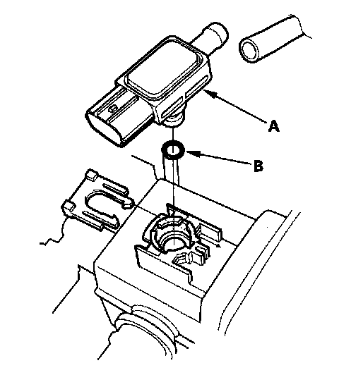 Install the parts in the reverse order of removal with a new O-ring (B).