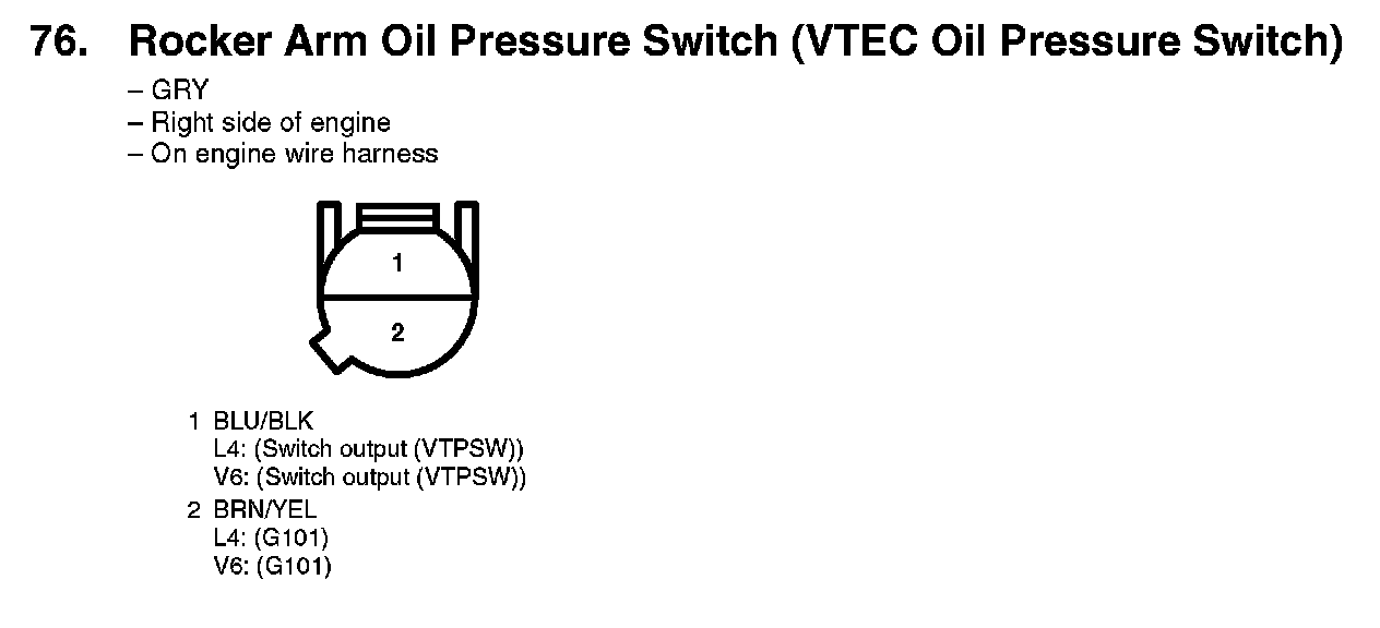 76. Rocker Arm Oil Pressure Switch (VTEC Oil Pressure Switch):