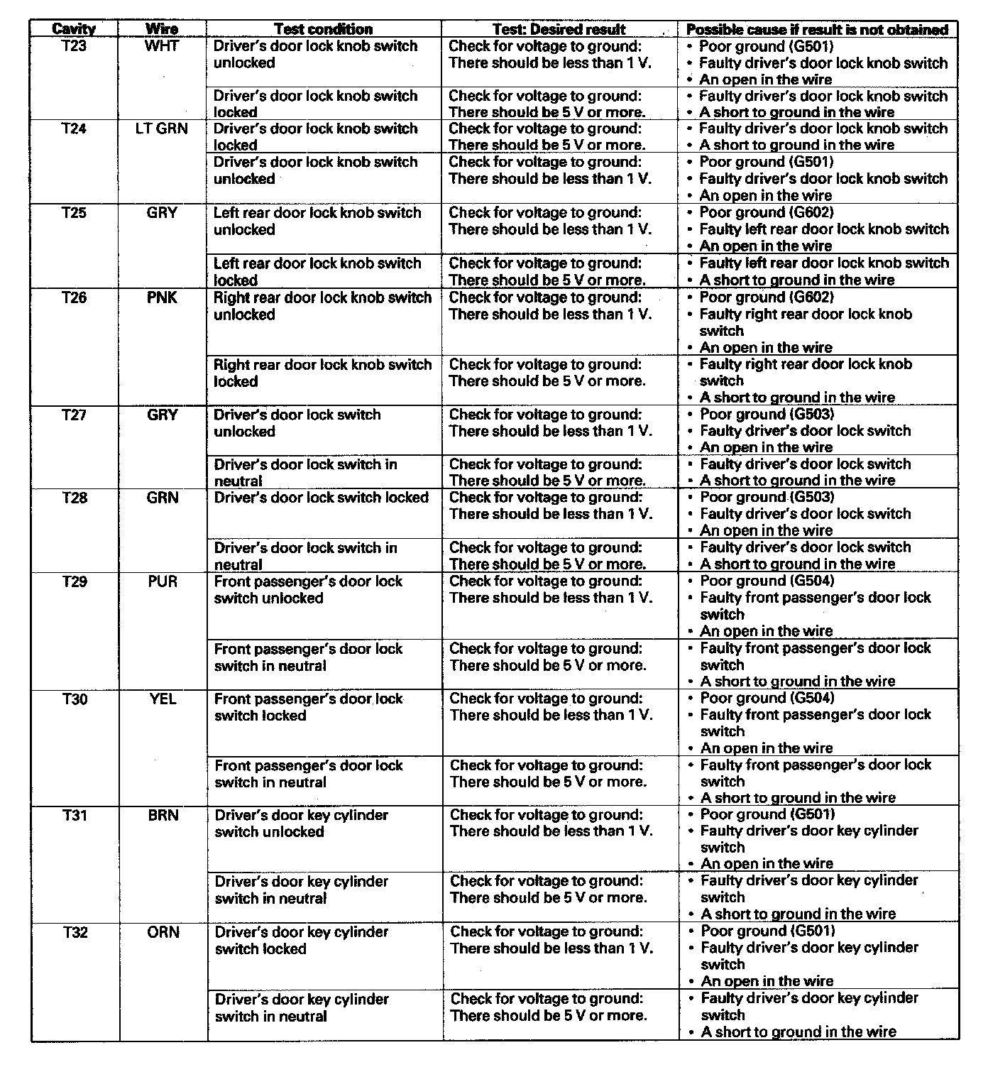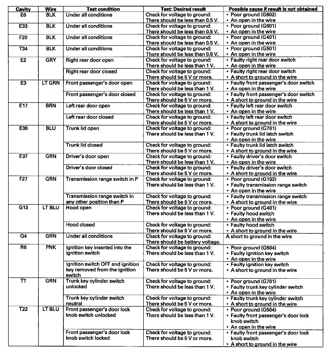 6. Reconnect the connectors to the under-dash fuse/relay box, and make these input tests at the connectors.
