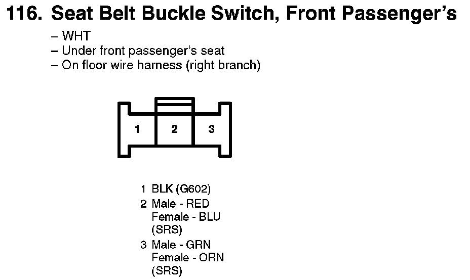 116. Seat Belt Buckle Switch, Front Passenger's: