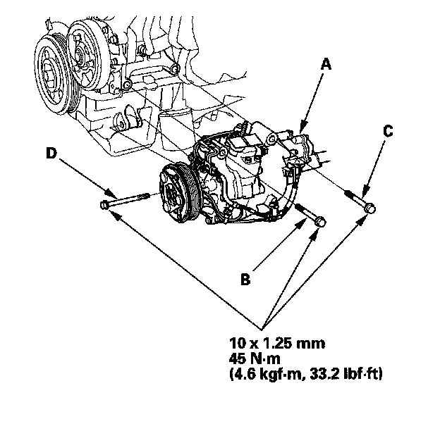 15. Install the A/C compressor in the reverse order of removal, and note these items: