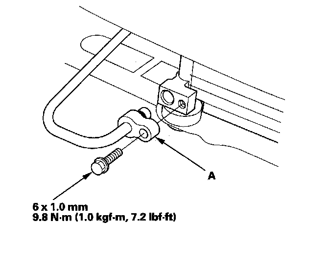 4. Remove the bolt, then disconnect the receiver line (A) from the A/C condenser.