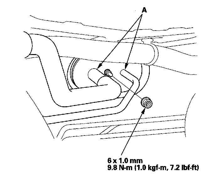 3. Remove the nut, then disconnect the A/C lines (A) from the evaporator core.
