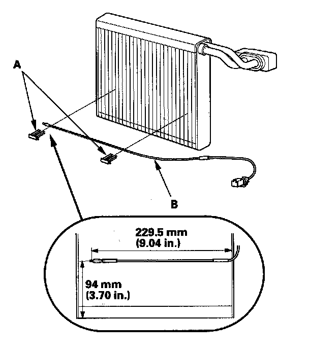 8. Remove the clips (A) and the evaporator temperature sensor (B).