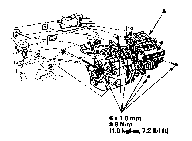 Heater Unit/Core ReplacementSRS components are located in this area. Review the SRS component locations, and the precautions and procedures before doing repair or servicing.