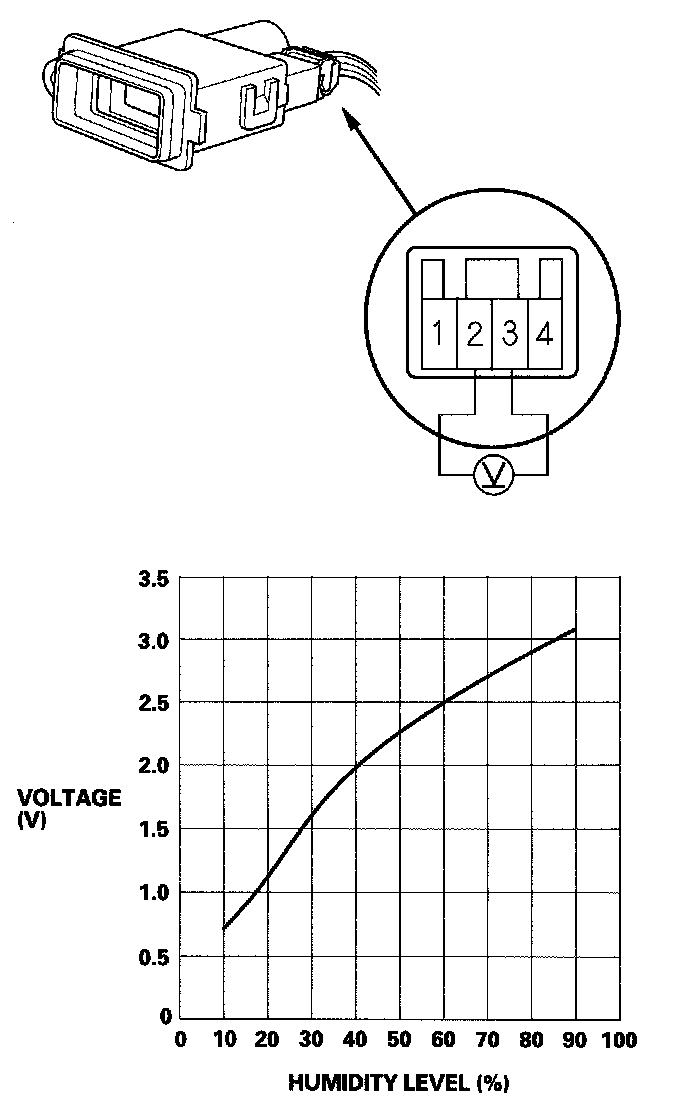 3. If the voltage is not as specified, replace the humidity/in-car temperature sensor.
