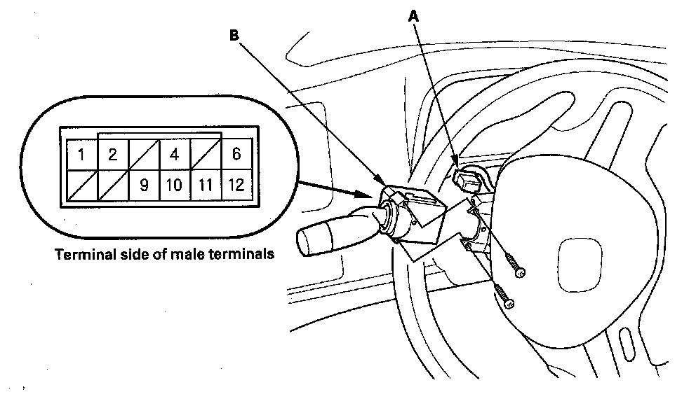 3. Disconnect the 12P connector (A) from the combination light switch (B).
