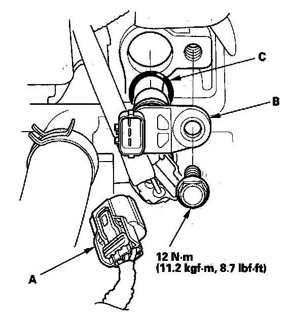 Install the parts in the reverse order of removal with a new O-ring (C).