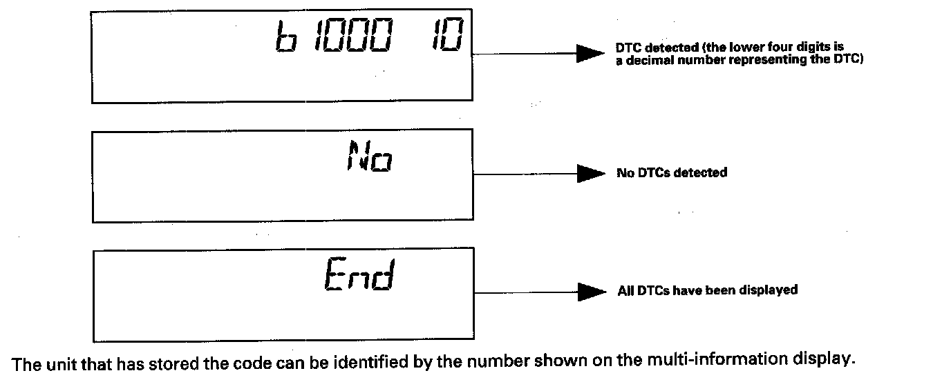 The unit that has stored the code can be identified by the number shown on the multi-information display.