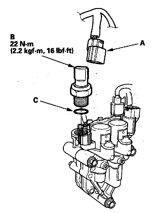 Install the parts in the reverse order of removal with a new O-ring (C).