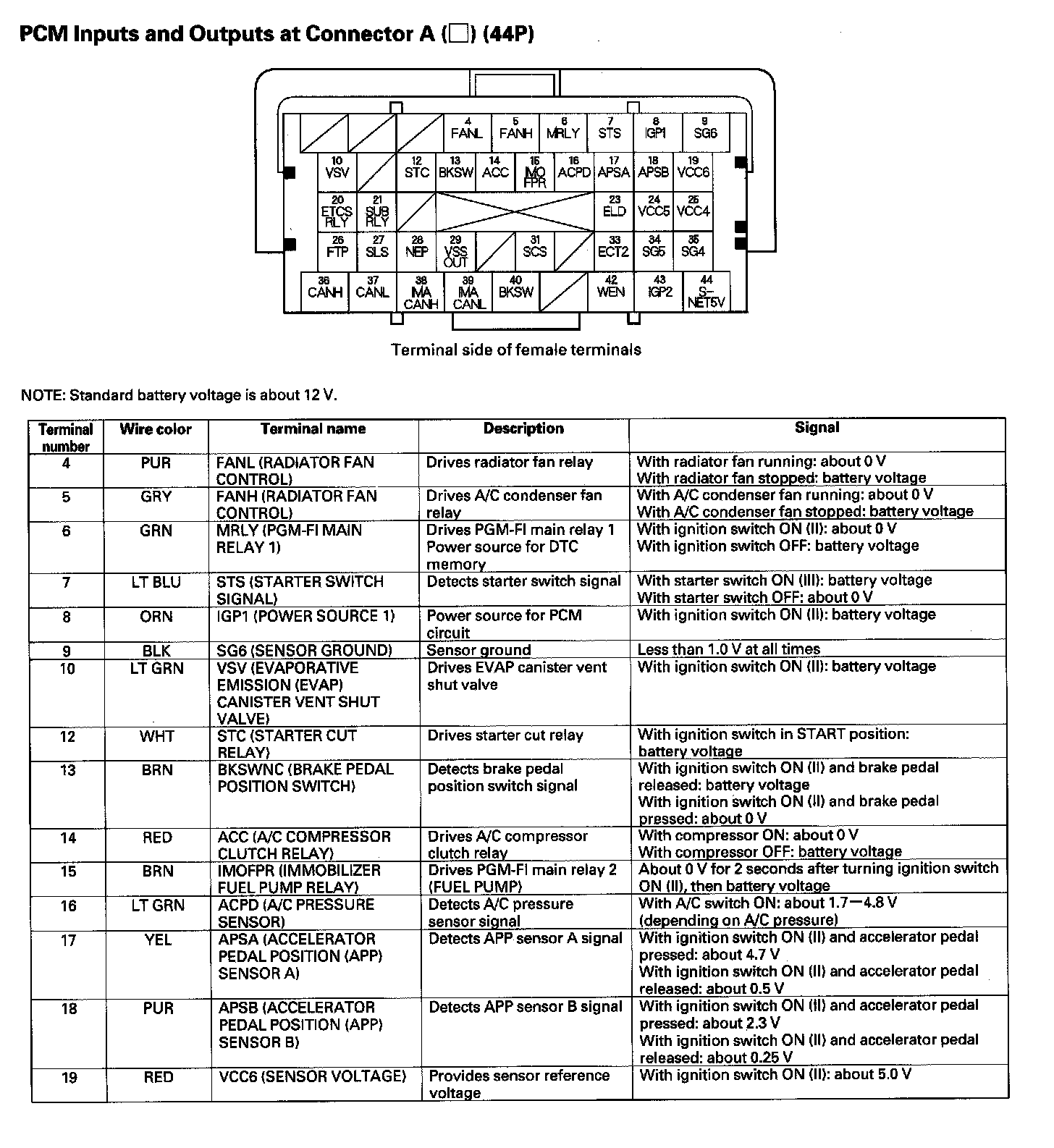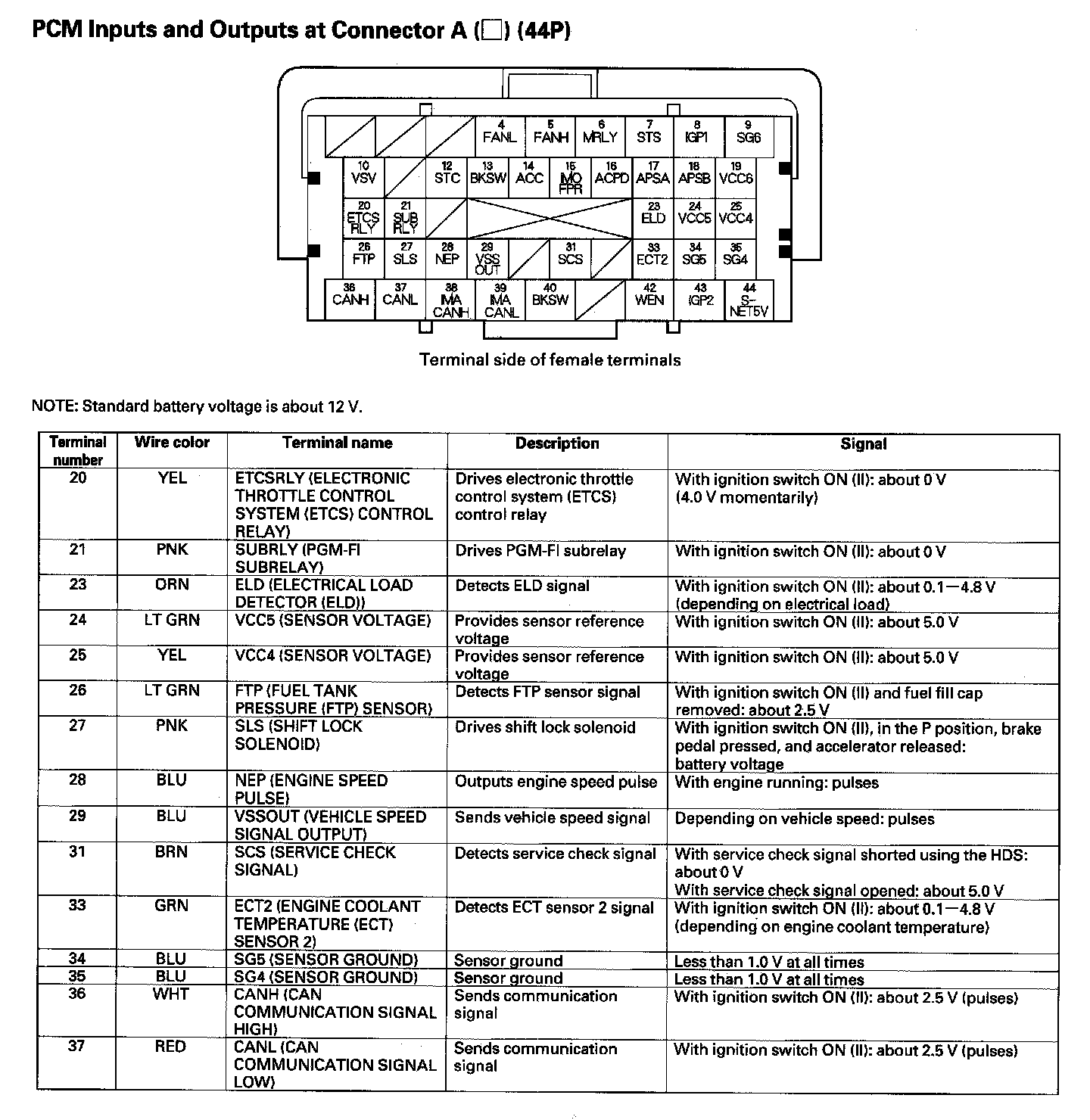 PCM Inputs And Outputs At Connector A (Square) (44P) Part 3: