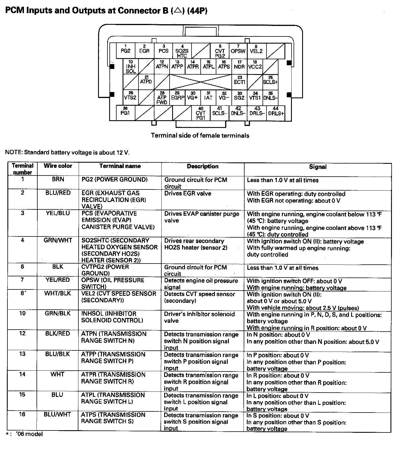 PCM Inputs And Outputs At Connector B (Triangle) (44P) Part 1: