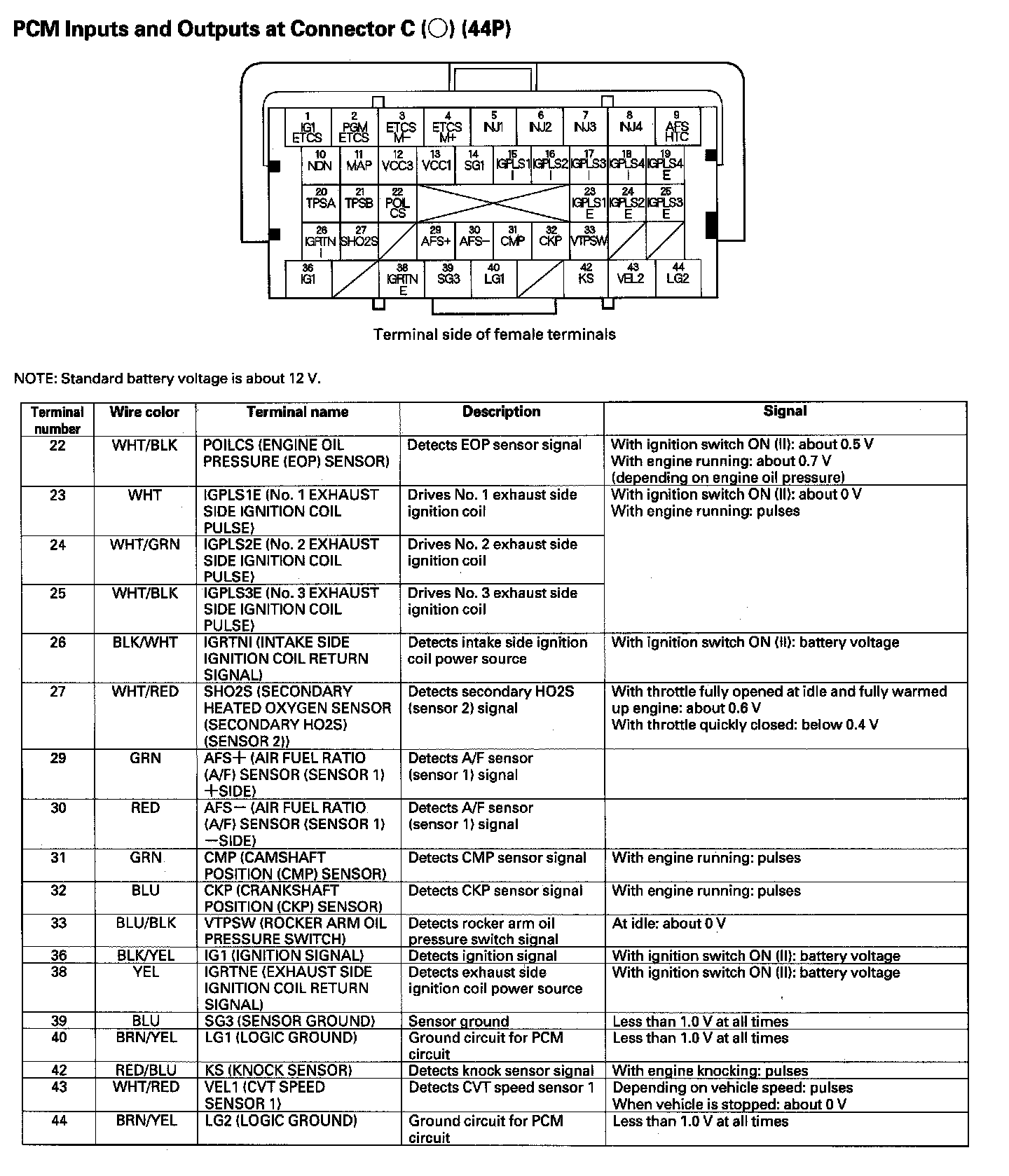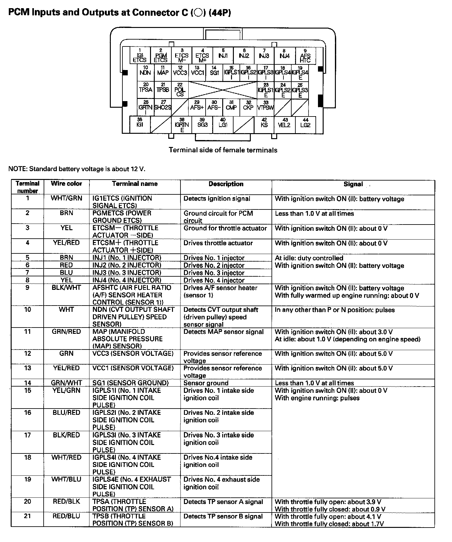 PCM Inputs And Outputs At Connector C (Circle) (44P) Part 1: