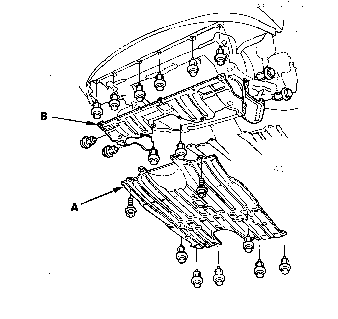 8. Connect the gauge (07406-0020400 or 07406-0020401) to the forward clutch pressure inspection port (B).