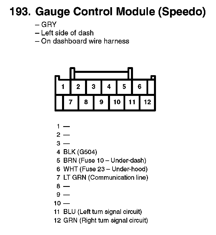 193. Gauge Control Module (Speedo):