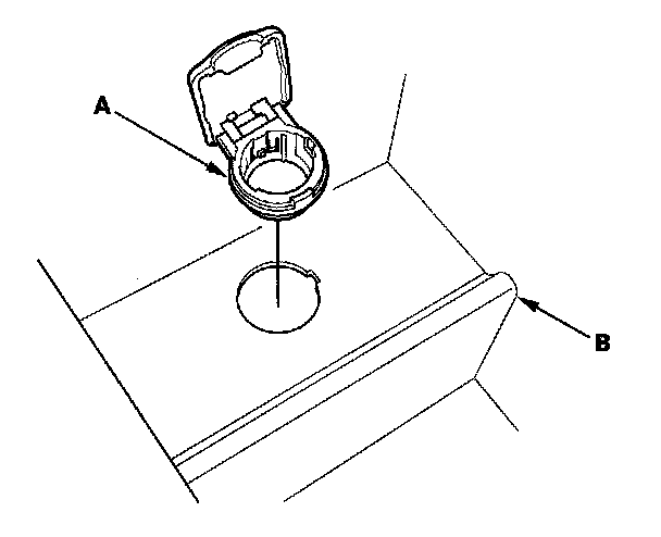 2. Remove the accessory power socket panel (A) and disconnect the 2P connector (B).