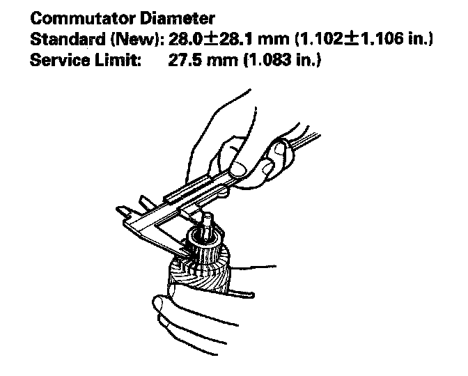 5. Check the commutator diameter. If the diameter is below the service limit, replace the armature.