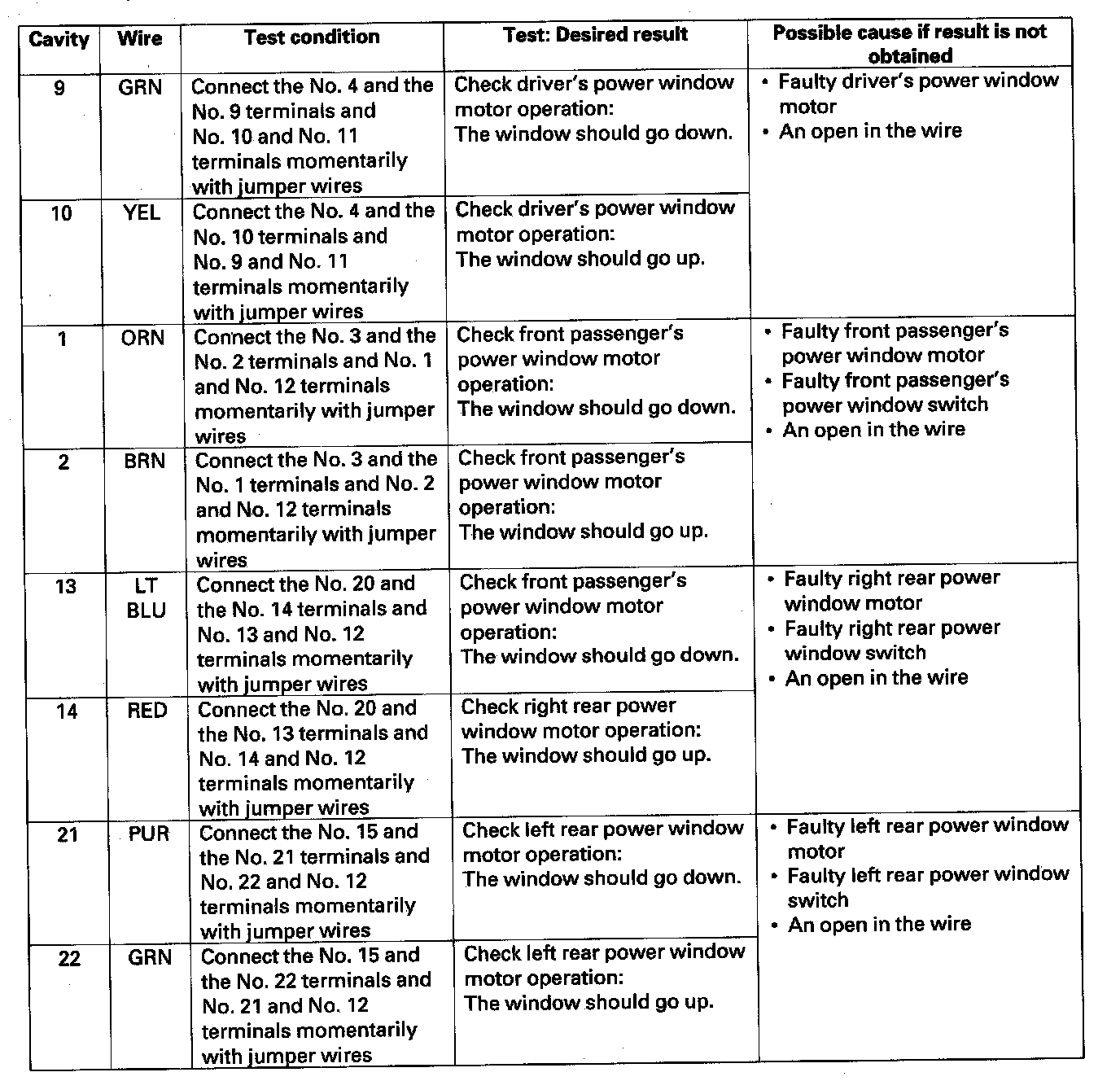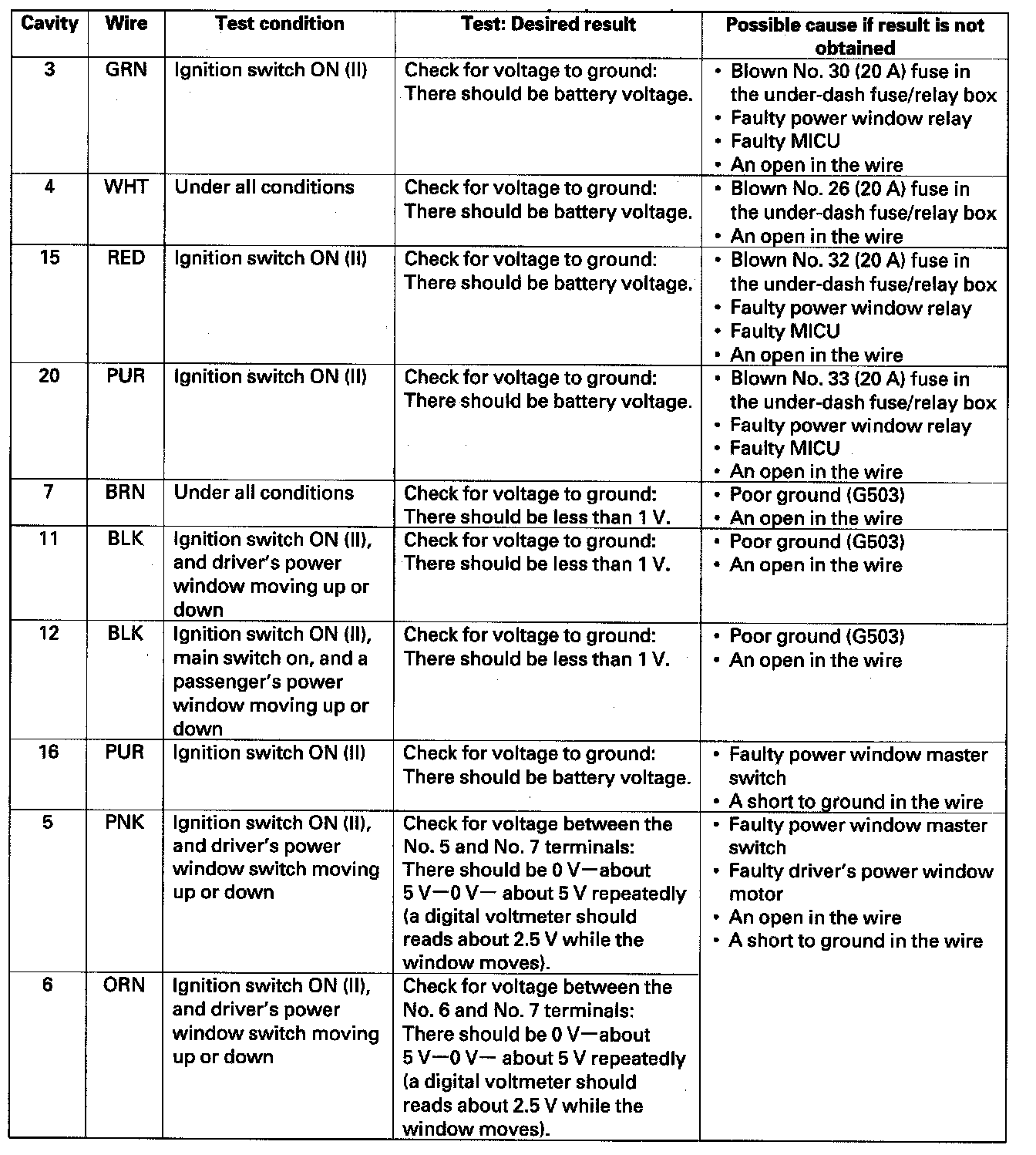 Master Switch Input TestNOTE: The power window control unit is built into the power window master switch, and it only controls the driver's window operations.