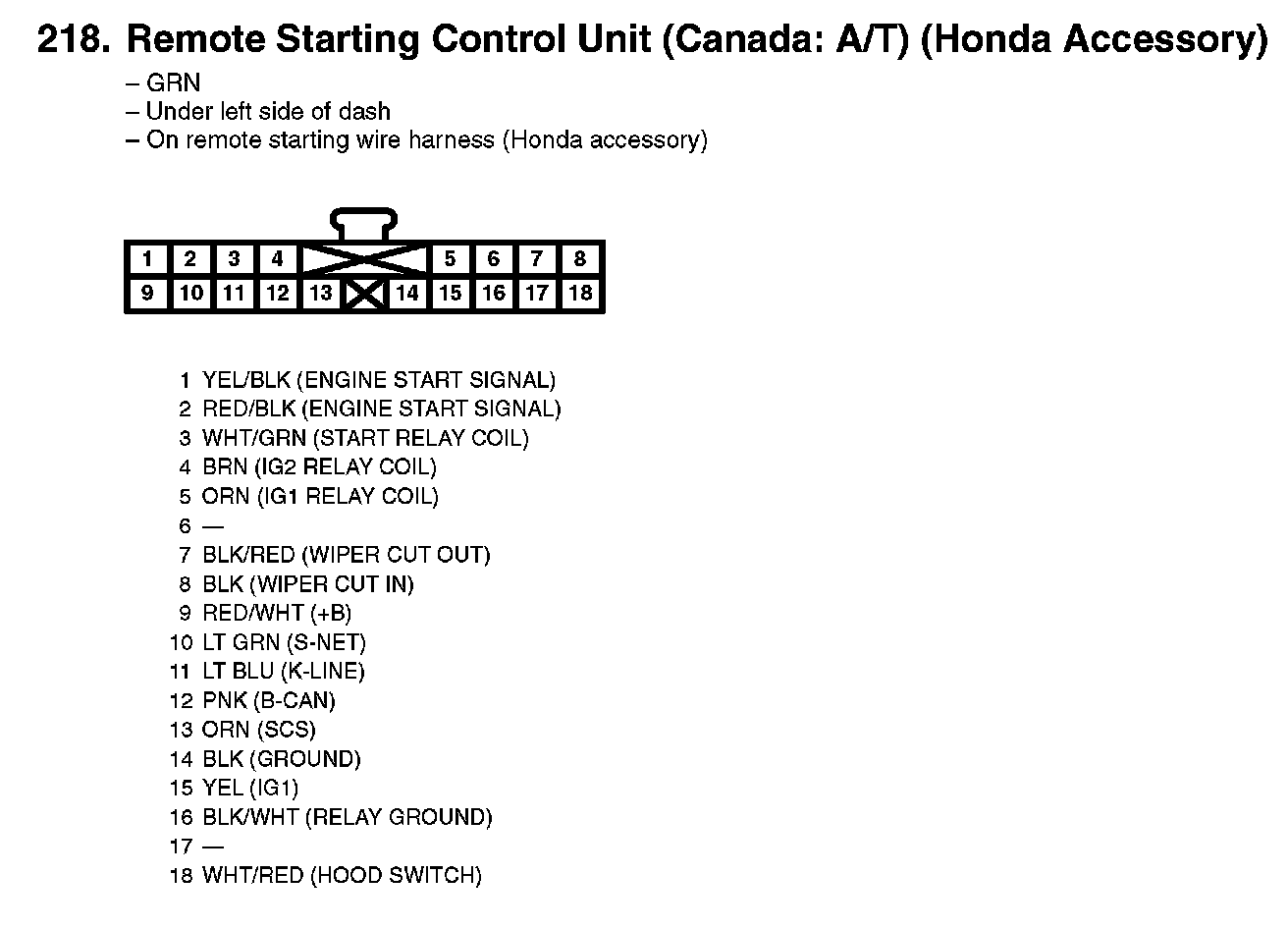 218. Remote Starting Control Unit (Canada: A/T) (Honda Accessory):