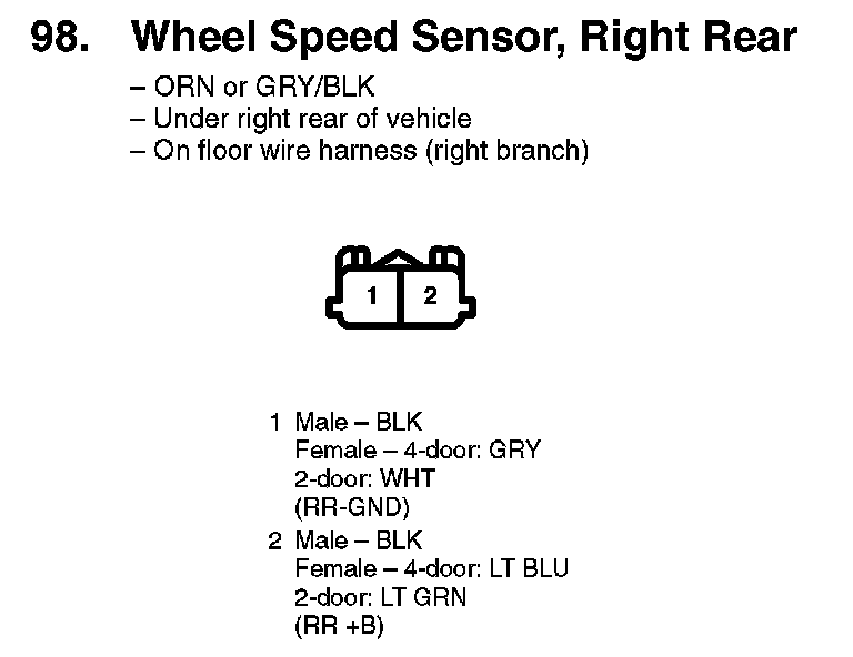 98. Wheel Speed Sensor, Right Rear: