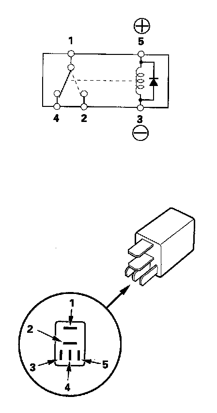 - There should be continuity between the No. 1 and No. 2 terminals when battery positive terminal is connected to the No. 5 terminal, and battery negative terminal is connected to the No. 3 terminal.