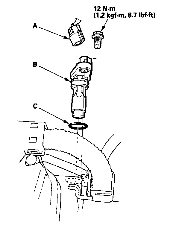 Install the parts in the reverse order of removal with a new O-ring (C).