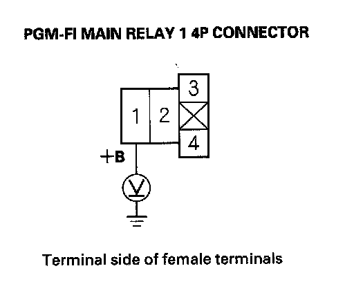 62. Measure voltage between PGM-FI main relay 1 4P connector terminal No. 1 and body ground.