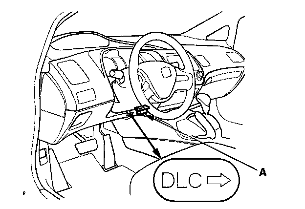 2. Connect the HDS to the data link connector (DLC) (A) located under the driver's side of the dashboard.