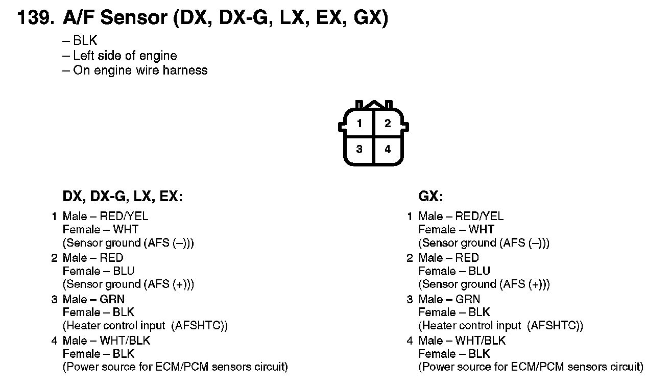 139. A/F Sensor (DX, DX-G, LX, EX, GX):