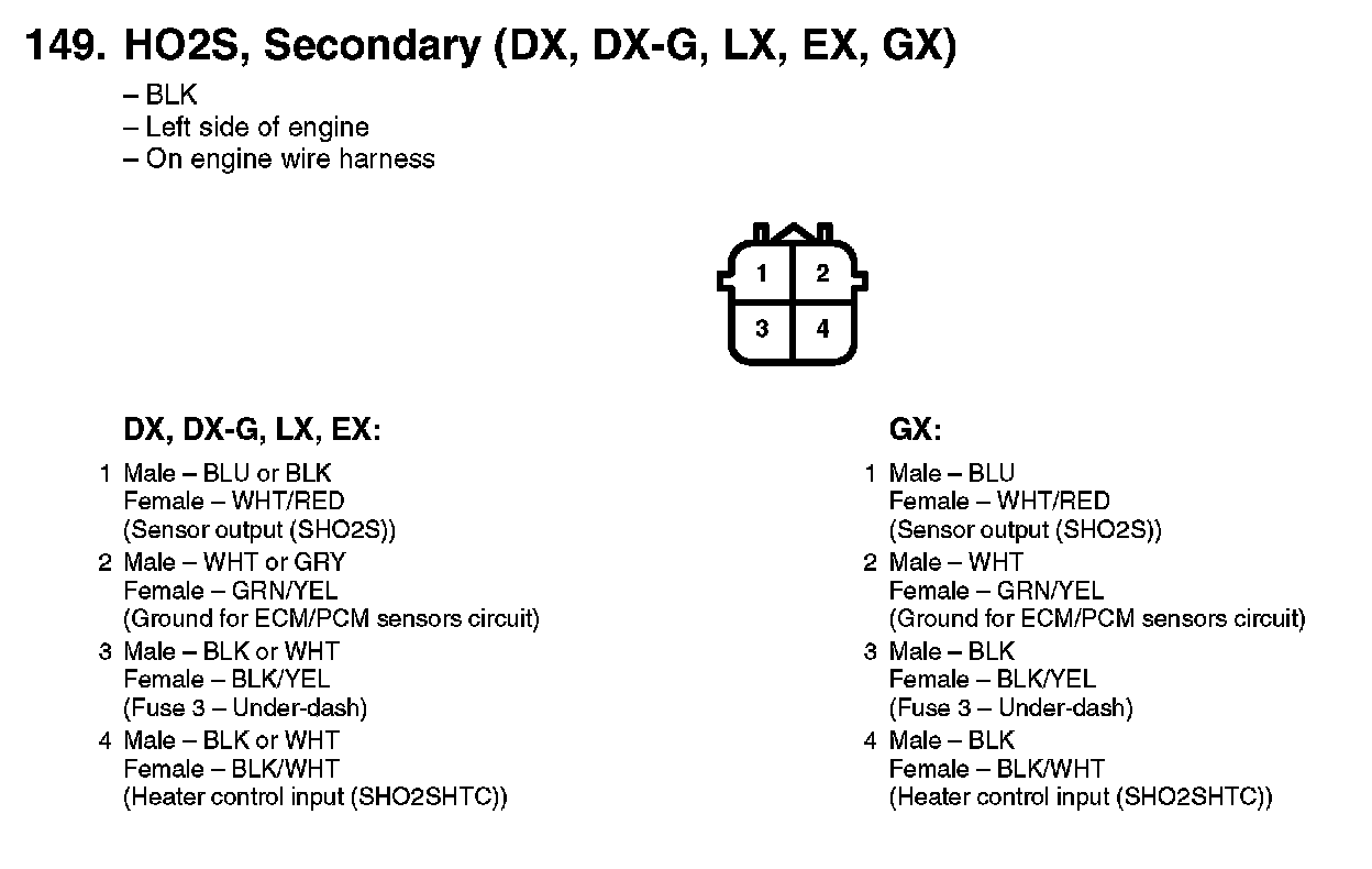 149. HO2S, Secondary (DX, DX-G, LX, EX, GX):