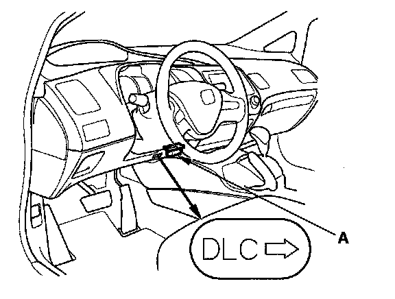 1. Connect the HDS to the data link connector (DLC) (A) located under the driver's side of the dashboard.
