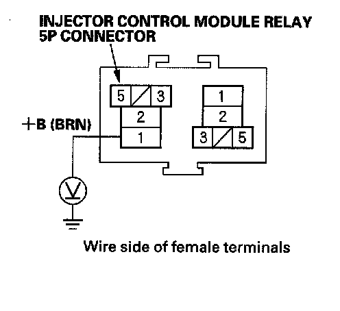 8. Measure voltage between injector control module relay 5P connector terminal No. 1 and body ground.