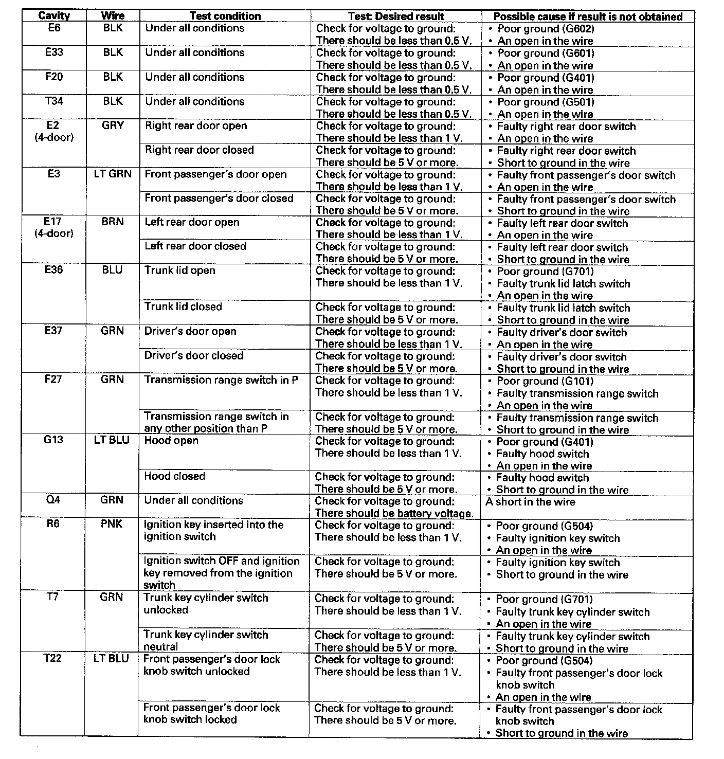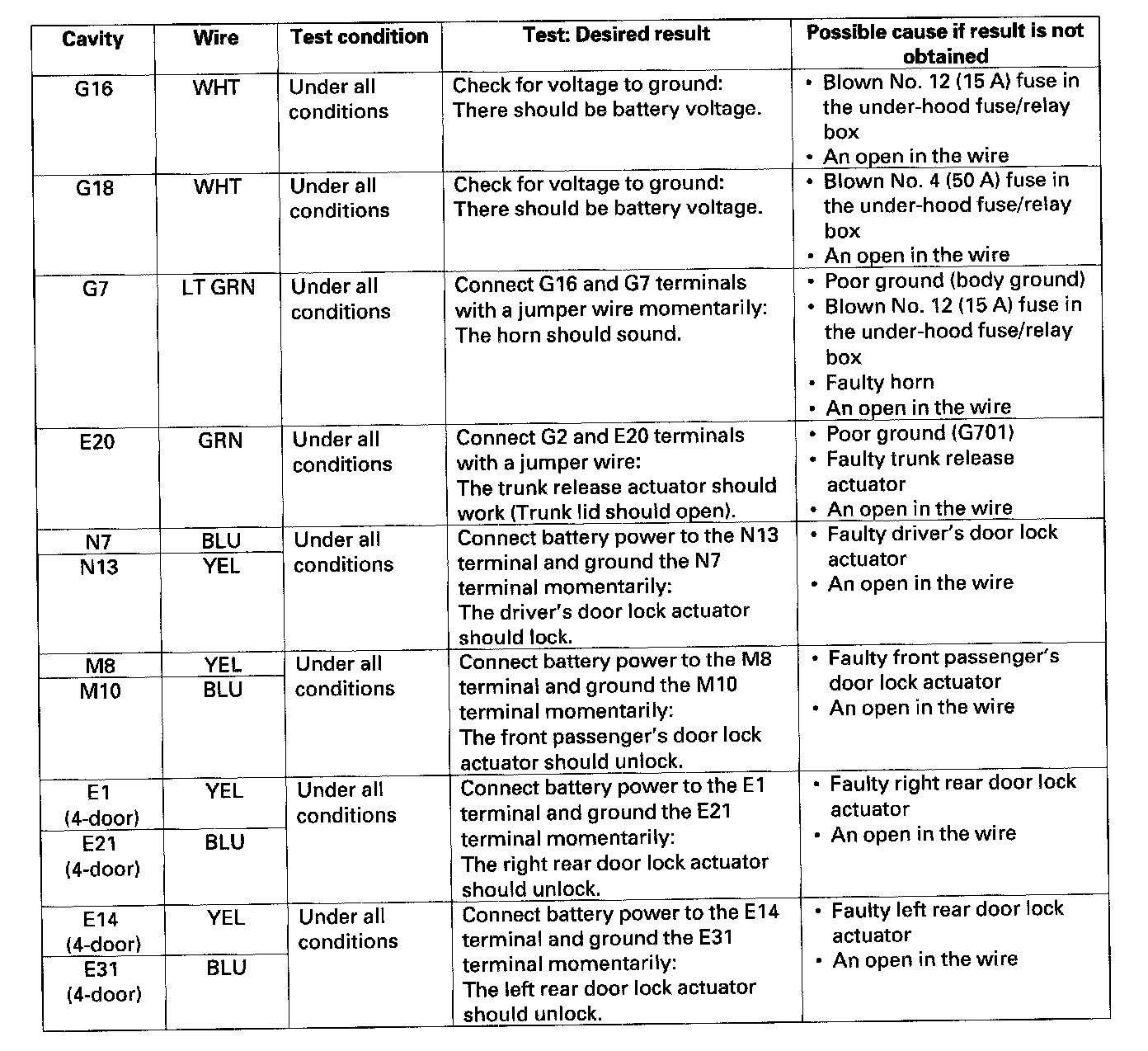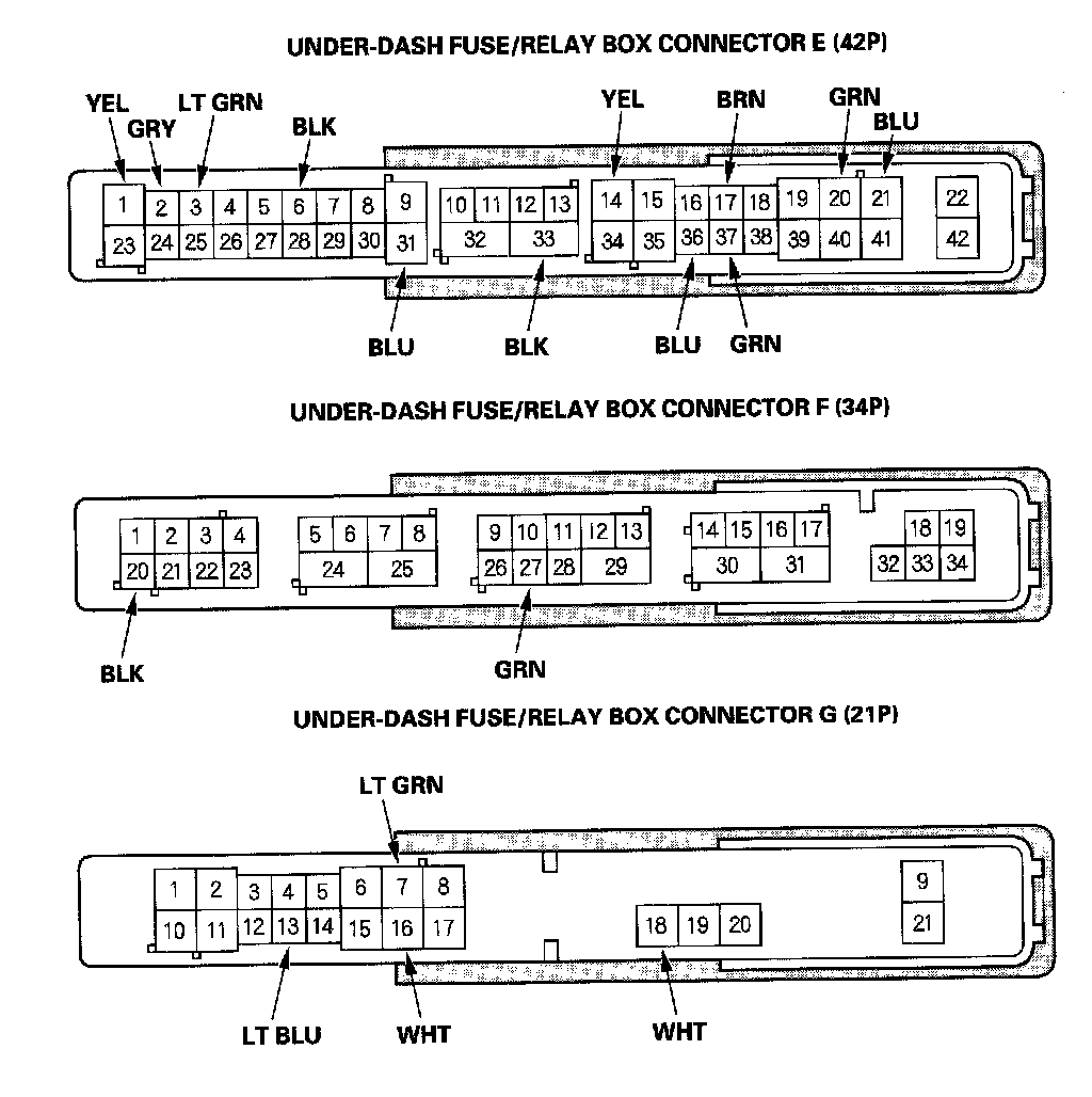 6. Reconnect the connectors to the under-dash fuse/relay box, and make these input tests at the connectors.