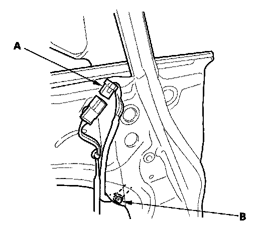 3. Disconnect the connector (A), and detach the harness clip (B).