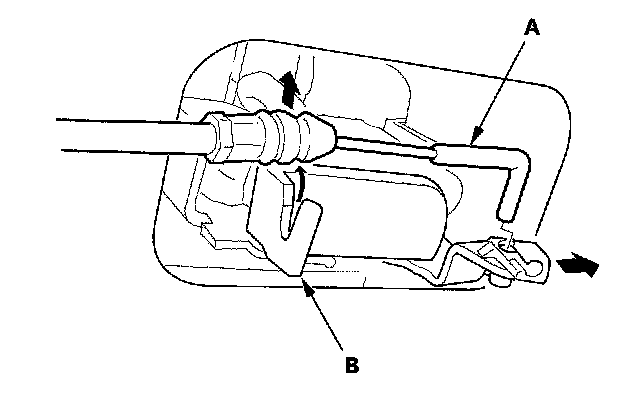 6. Install the release lever/cable in the reverse order of removal, and note these items: