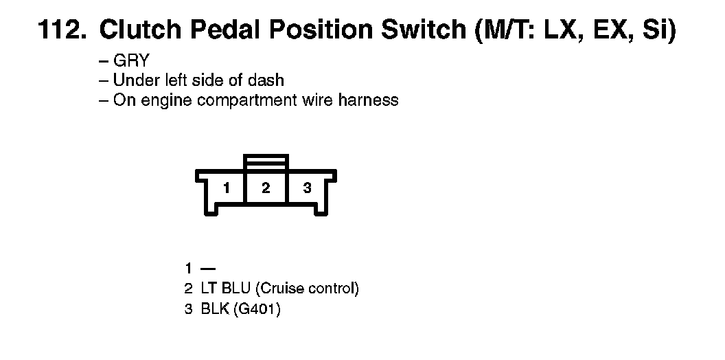 112. Clutch Pedal Position Switch (M/T: LX, EX, Si):